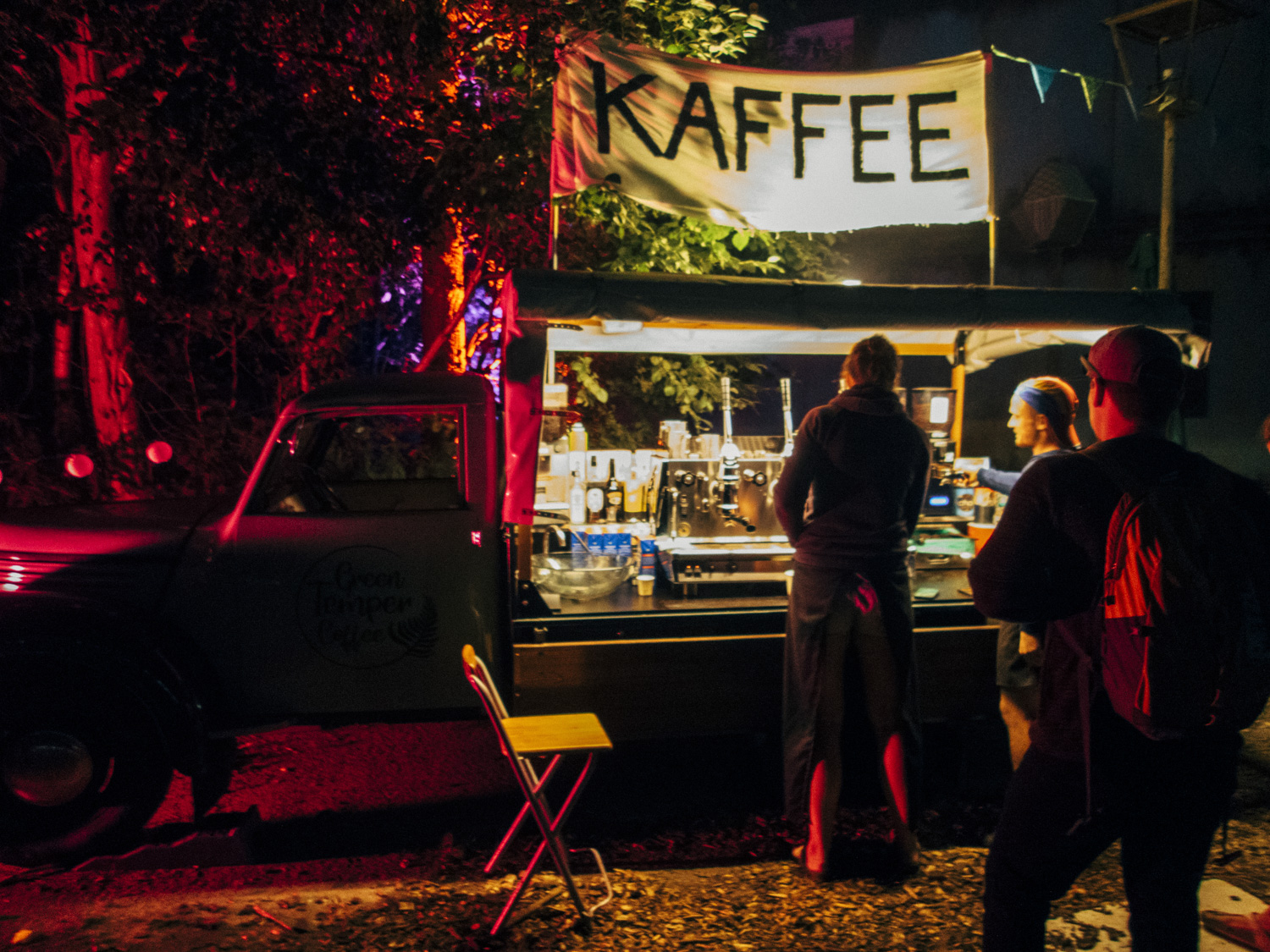 Arriving at the former airfield felt like entering a magical world. We walked around the lovingly designed festival locations through foggy woods and between colourful lights. Everyone was dressing up, dancing and just enjoying themselves. We spent our time trying to longboarding, skateboarding, slacklining, wakeboarding, swimming and exploring the festival area.